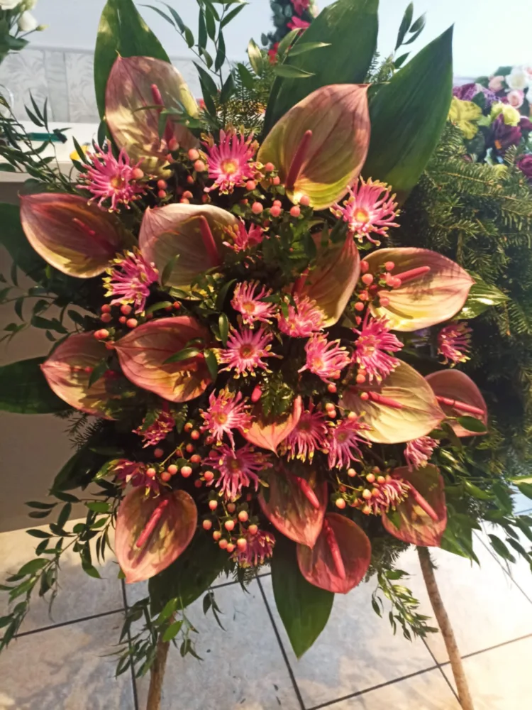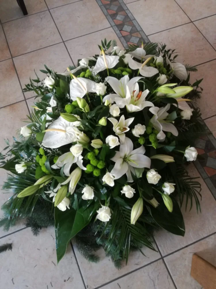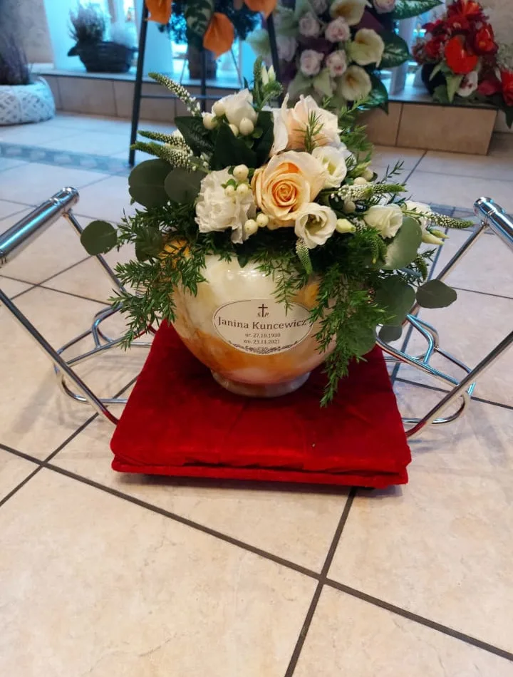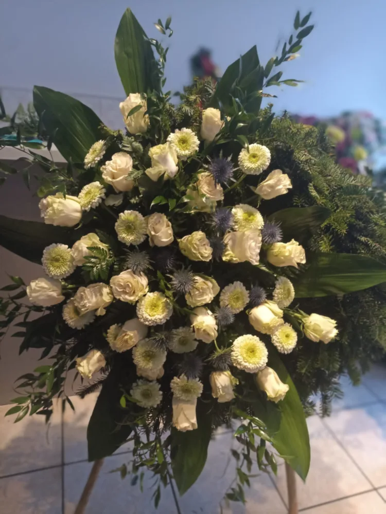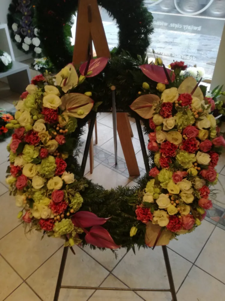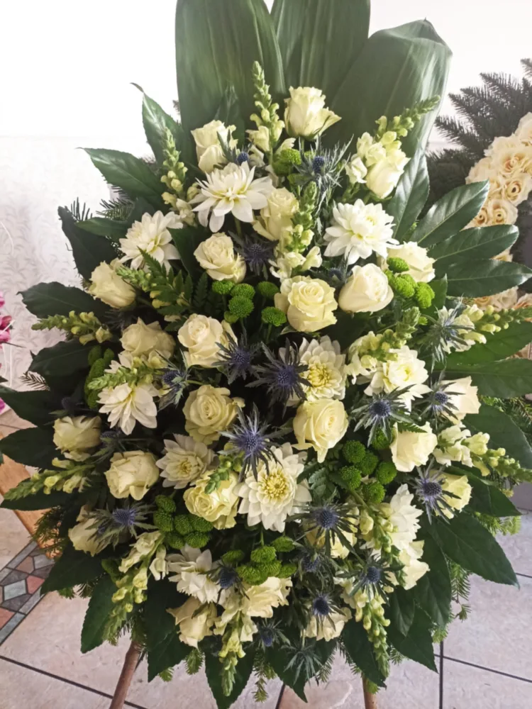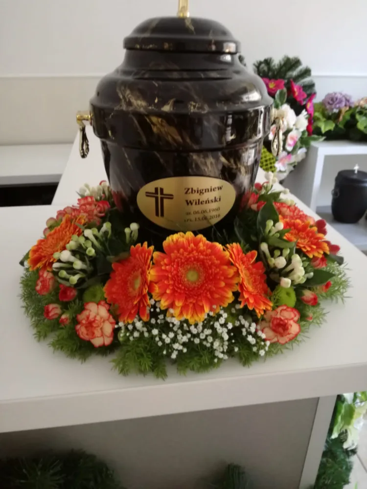 W Centrum Pogrzebowym Mudryk jesteśmy zawsze gotowi służyć radą przy wyborze odpowiednich kompozycji kwiatowych na uroczystość pożegnania ukochanej osoby. Osoby, które odwiedzają biuro naszej firmy pogrzebowej mogą zamówić kwiaty na pogrzeb – głównie wieńce i wiązanki pogrzebowe, a także dekoracje kwiatowe na trumnę i urnę – które są wykonywane w naszej własnej kwiaciarni. Kolorystyka i gatunki kwiatów są zawsze starannie dobrane, podkreślając charakter i osobowość osoby zmarłej.