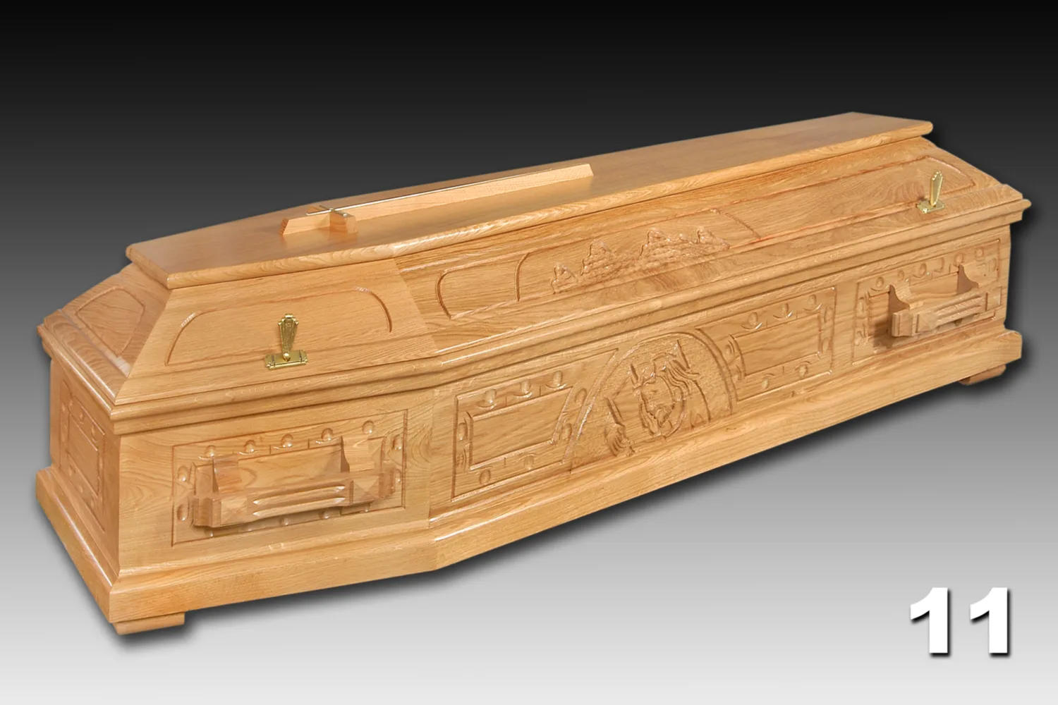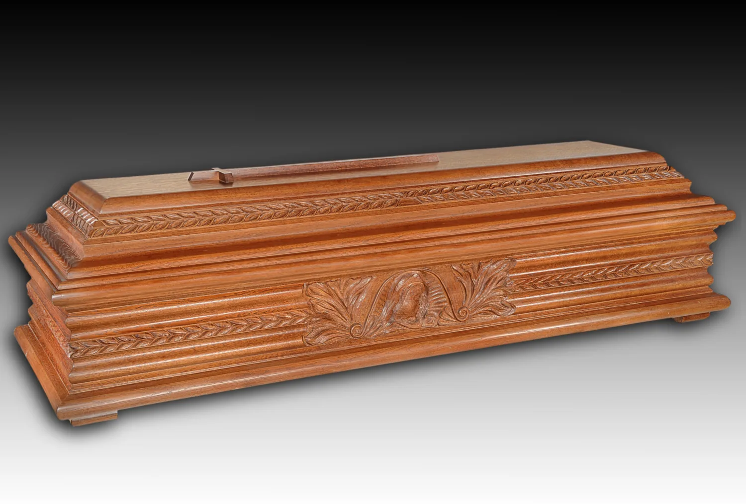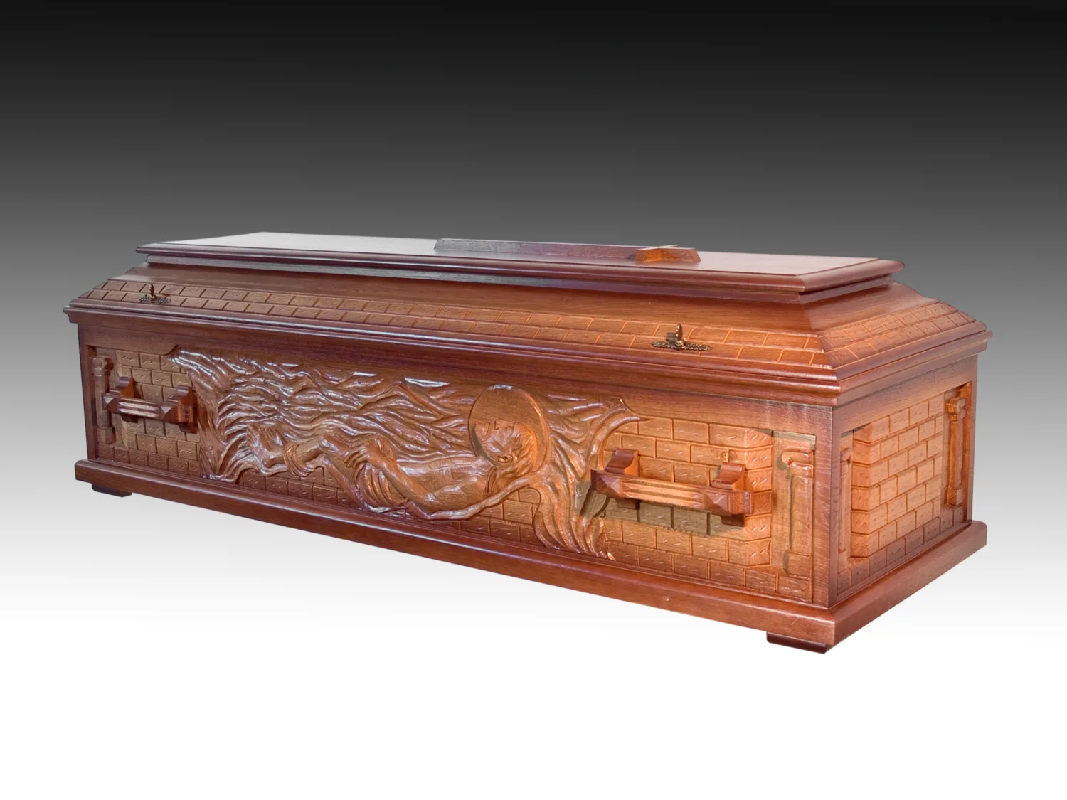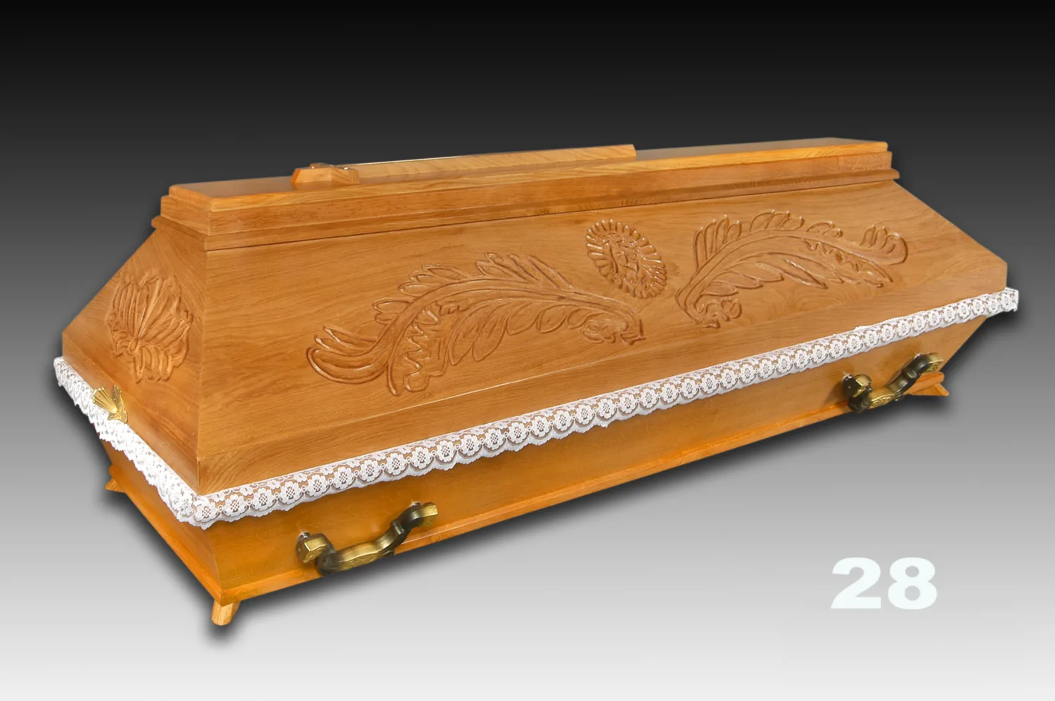 Wyjątkowym pięknem charakteryzują się trumny z ręcznie wykonanymi rzeźbieniami. Są to najczęściej motywy religijne lub roślinne wykonane ręcznie przez prawdziwych mistrzów o wysokich zdolnościach artystycznych.
